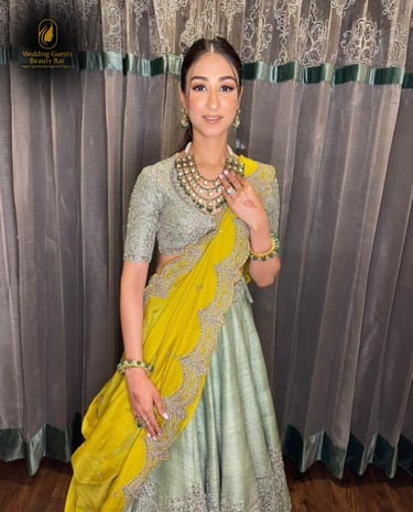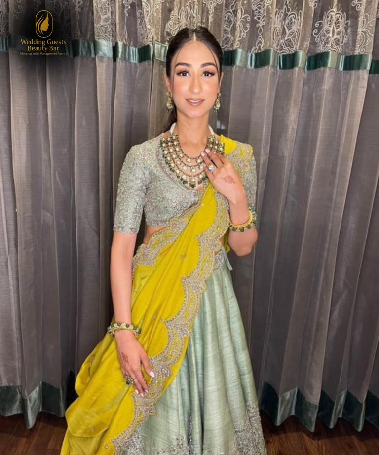 Perfect saree and dupatta draping with styling finesse. Every pleat, pin, and fold is managed seamlessly to complement your complete look.